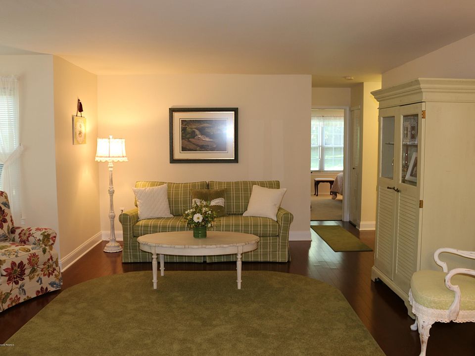 Light, bright, airy and updated first floor two bedroom end unit home in the heart of Shady Oaks. Remarkably pristine first floor home has one year old new manufactured hardwood floors in the living and dining room. Freshly painted and new outlets. The master bedroom suite has a large walk-in closet and nicely updated full bathroom. Both bedrooms have wall to wall carpeting. Updated lighting and two full bathrooms. Washer and dryer are located in the kitchen pantry closet. Enjoy the clubhouse, pool, tennis court and shuffleboard courts. Just minutes to downtown Red Bank for shopping, restaurants and theater. All room sizes are approximate.