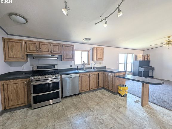 More than the average square footage, bedroom count and bathrooms at this affordable price of $225,000 in La Grande, OR! Boasting 4 bedrooms, 3 full bathrooms and a bonus room or office space, with an open floor plan in the common areas sets this one apart. The master bedroom and en suite are located at one end of the home for privacy with a bonus room attached and a remodeled private bathroom. On the other side of the home, 3 bedrooms are each separated by 2 full bathrooms to share. One bathroom is oversized with a tiled shower, stand alone jacuzzi tub and on demand water heater. Come into the kitchen with a newer gas range, new dishwasher, and space to make the kitchen what you want it to be! Vaulted ceilings and space for a living room, dining room and kitchen combo make the common area of this home have enough room for it all. This property is priced to be affordable while giving the buyer room to make improvements as desired!