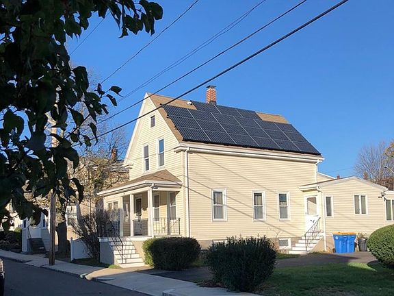 8 room house: living room, family room, enclosed/heated sunporch, dining room, 3 bedrooms + office. Kitchen w custom cabinets, recessed lighting, newer appliances. Hardwood floors, solar panels already been pd in full, newer front-loading Bosch washer/dryer, full basement w interior & exterior access, large back yard w shed.
