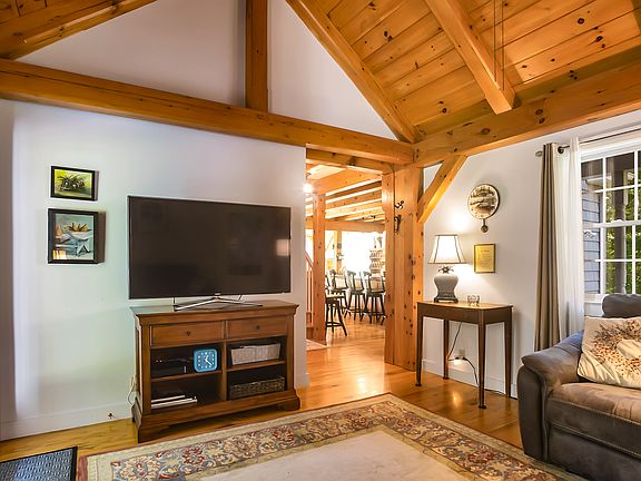 Exquisite, custom designed, passive solar, Post and Beam, colonial on over 5 acres of pristine land abutting 1000s of acres of Water Company and State forestry, where privacy abounds. Beautiful, First floor master suite with cathedral ceiling and full bath. Open concept floor plan, with chefs kitchen including SS appliances, granite counters, over-sized island, custom made handcrafted cabinets, double oven, Jenn-Air propane cook top and hood, and track lighting perfect for entertaining. With finished space over the garage (which has it's own entrance) and a fully finished walkout basement this home would be perfect for the multi-generational family OR a bed and breakfast. Big bright Andersen windows throughout as well as character oak floors. Over-sized insulated garage. 4 zones of heat, mahogany stairs and custom made railing on front porch, side walk and patio pavers, maintenance free vinyl shaker siding, all handicap accessible. Generator transfer switch is such a nice amenity. This home/property is like nothing else you've seen and a must see.