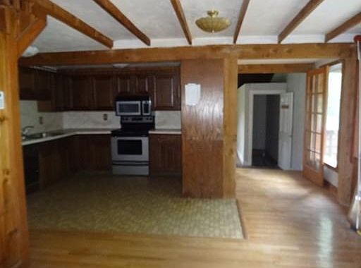 Private and lovely setting. A-Frame Contemporary features 2 Bedrooms and 1 Bath. Spacious living room with skylights, wood stove and French doors leading to the back yard. Open Kitchen - Dining area leading to large front deck. Second floor bedroom is very spacious with a private balcony. Cash Sale Needed or 203k Loan, WILL NOT QUALIFY FOR CONVENTIONAL FINANCING Priced well below assessed!! Call Today!