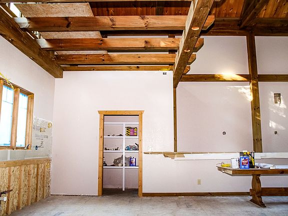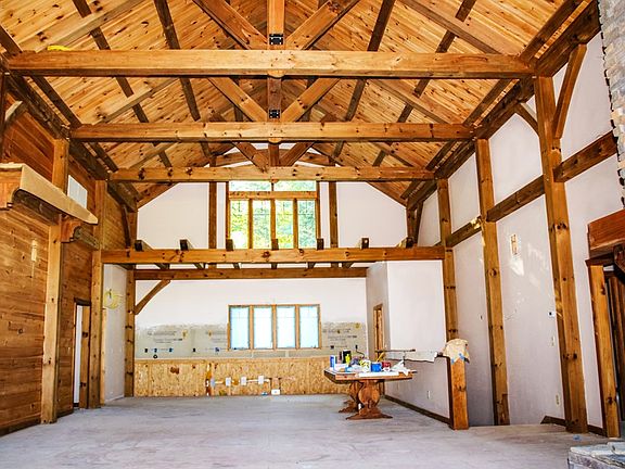 This large timber frame-like home can be yours to finish! Cement log siding home with garage and workshop. 3 bedroom/4 bathrooms, two-level story home. Construction is about 65 to 70 percent complete! Exposed beams, a stone dual fireplace that can be gas logs with propane or wood-burning -Mahogany front door– Two A/C units in place. Master suite on main with large, 2 bdrm with bath on the main,huge living room/dining & kitchen.Nice pantry, office & Laundry. Downstairs -Safe room with safe room door to be installed (door already at the house) – separate A/C unit – bulletproof windows and roughed-in plumbing for a bathroom. A couple of bonus rooms and an oversized media room. The house is wired for internet and cable TV. All rough electrical wiring and plumbing are complete inside. A lot of electrical fixtures are inside. House has stone walls around the outside and a paved driveway. Easy year-round access. Two car garage plus a detached workshop that needs to be completed as well. Septic not installed. Well installed many years ago. Must see to appreciate! Close to downtown Bryson City. The seller must sell due to illness. Tommy Woodard was the GC for the home.