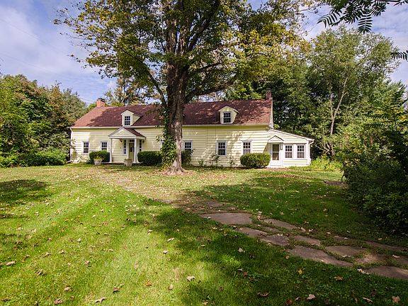 Feel the excitement build as you meander along the stone walkway to the charming portico and welcoming Dutch door. This authentic, 1813 farmhouse beckons you to step inside. The beamed ceilings, wideboard floors and the impressive, brick, kitchen fireplace in which meals were once prepared, transports you back in time. This is a great home to cozy into with your loved ones. It is also a fantastic place to entertain guests. The updated kitchen offers plenty of space to congregate and opens to a spacious dining room. The living room with its classic fireplace and beautiful mantle, now houses a toasty, inviting woodstove. In addition to the expansive common areas, the first level also offers two bedrooms and two full baths. Upstairs you are greeted by a wonderful, relaxing family room space, a two room master bedroom, three additional bedrooms and a full bath. There are so many nooks and crannies. You must come and explore. The lovely yard, plantings and mature trees create an idyllic setting. Be sure to see the barn. It makes a perfect garage, workshop or studio.
