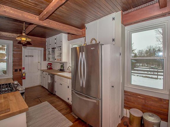 Built in 1876 as a schoolhouse, this home sits on 2 acres surrounded by stonewalls and lush kitchen gardens. It has been remodeled with care while keeping the antique flavor including the original school black board. This home consists of 2 bedrooms and 2 baths plus an office space upstairs. It boast a 2 car garage, a wood shed and a chicken coop. Low taxes and access to the Fryeburg Academy School District make for an ideal yearround or second home residence.