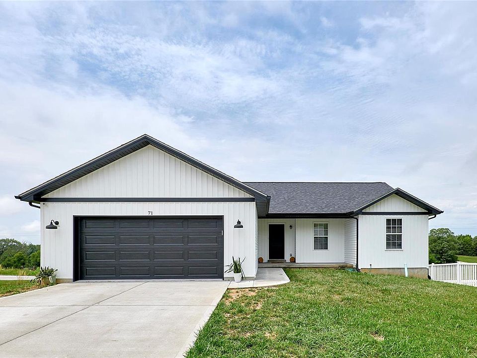 Welcome to your dream home! This 2-year-new property offers a perfect blend of modern luxury and comfortable living. Vaulted ceilings create an airy and open living space perfect for family time and entertaining. The kitchen boasts beautiful granite countertops, a breakfast bar, custom backsplash and white cabinets with sleek black hardware and stainless appliances – the refrigerator stays! The primary bedroom offers a peaceful retreat and ensuite bathroom with a stunning custom- tiled shower, double sink vanity with granite top and spacious walk-in closet with direct access to the main-floor laundry. Other features include, split-bedroom floor plan, oversized garage with custom black door and coach lights, vertical siding, Cheyenne style interior doors throughout, full basement w/ rough-in and walk out to a large patio for outdoor entertaining and more! Schedule your private showing today! Additional Rooms: Mud Room