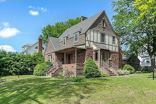 Beautiful English Tudor Style Lawrence Estates Single Family in Medford! Situated on a corner lot in a highly desirable neighborhood, this home has a beautiful brick exterior with new roof, updated heating system and new air conditioning condenser. This 3-bedroom, 1 full / 2 half bathroom home features hardwood floors throughout with lots of old charm wood work. The previous owner was the builder and there is evidence of lots of love and attention to detail throughout! Lots of opportunities to update the home with new kitchen and bathrooms. Partially finished basement with a speakeasy bar and wine cellar. Lovely family neighborhood with lots of potential! Additional storage above garage. The back patio is perfect for summer BBQ's. Close to Public Transportation and easy access to 93 and Whole Foods. Make this your new home!