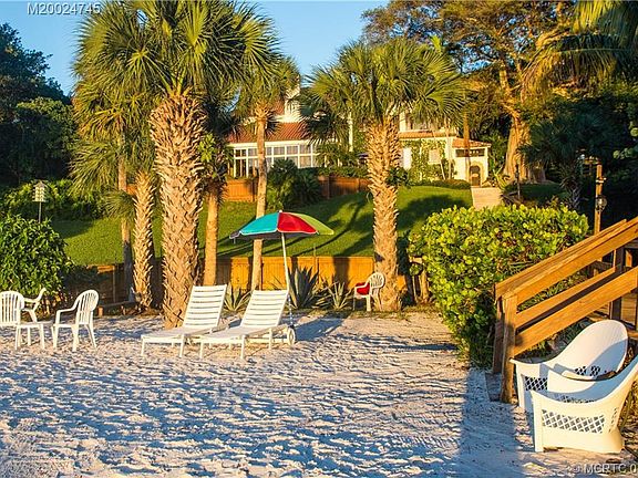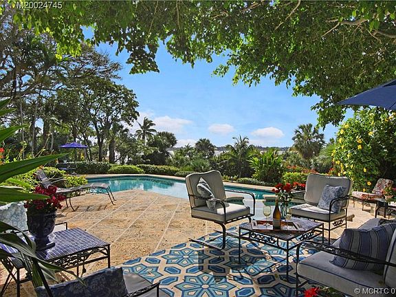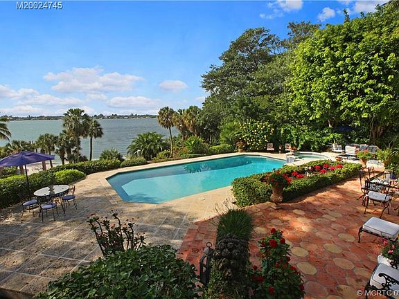 Situated on over 2 acres with 222ft. on the St. Lucie River, this grand property takes you back to simpler times. The grounds are lush with peaceful blossoming gardens and gentle sloping pathways down to the pool, dock and white sandy beach. There is plenty of outdoor space for spending time with family or friends in a beautiful backyard setting. The majestic home was built in the Mizner Mediterranean style and many of the original elements have been lovingly preserved, such as the intricate wrought iron detailing, impressive Pecky cypress woodwork, signature archways between some of the rooms, a romantic balcony off of the master bedroom, original fireplaces and much more as you will discover. The living spaces are large and offer flexibility in their uses to suit the next owner. There is also a charming 1 bedroom, 1 bath guest house that is reminiscent of an English country cottage. This is truly a unique and private location in the quaint Town of Sewall's Point.