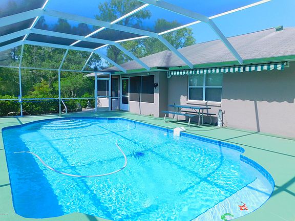 THREE BEDROOM TWO BATH 1998 BLOCK STUCCO HOME IN RAINBOW LAKES EST. MASTER BEDROOM VERY SPACIOUS, WITH TWO WALK IN CLOSETS.MASTER BATH FEATURES WALK IN SHOWER, JETTED TUB, AND TILE FLOORING. BOTH GUEST BEDROOMS GOOD SIZE, KITCHEN IS VERY LARGE,WITH LOTS FOR COUNTER TOP AND CABINET SPACE. BREAKFAST AREA LOOKS OUT TO THE IN-GROUND SCREENED POOL. HOME ALSO FEATURES FORMAL DINING ROOM AND INSIDE LAUNDRY. GARAGE IS 20X25. NEW AC IN 2014,NEW POOL PUMP AND MOTOR IN 2019.THEIR IS ALSO A METAL OUT BUILDING FOR STORAGE AND A 27X10 SCREENED ROOM.
