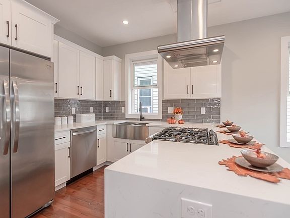 Check out this brand-new construction (from the foundation up) less than 5 miles from Downtown Boston. This is unit one out of three. This 3-bedroom, 2-bathrooms condo features an open concept kitchen with beautiful quartz counter tops, high end stainless steels appliances and custom soft close cabinets. The spacious kitchen overlooking the large deck and dining room area makes it the perfect place to host family and friends. The hardwood floors throughout the space add to the luxurious and modern feel. The master bedroom features an ensuite with a large bathtub and gorgeous floor tiles. Each unit gets a designated storage area in the basement. The Savin and Maywood community garden is conveniently located right in front of the property. Come check out this move in ready property asap!