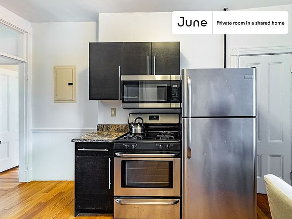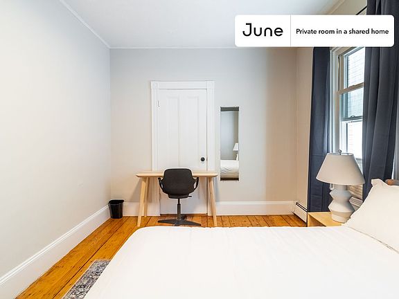 This Queen room in Roxbury is available on a 12 month lease or a flexible short term (31 to 364 days) lease. You pick your custom start and end date. Monthly rent rate is determined by furnishing preference, move-in date and move-out date. Speak to a June representative for recommendations on the best stay duration for the lowest rate.