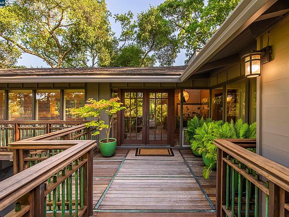 Welcome to a stunning Mid-Century residence where timeless design and Asian-inspired elegance converge. Thoughtful architectural details, soaring ceilings, skylights, and walls of glass create a bright, uplifting ambiance throughout. This exceptional home offers 4 bedrooms and 4 bathrooms across a spacious layout designed for comfort and refined living. The light-filled living room features a dramatic fireplace, custom built-ins, and seamless flow into the formal dining room with elegant Shoji screens and a passthrough to the kitchen, ideal for entertaining. The chef’s kitchen includes multiple prep areas, an island with bar seating, ample storage, a second sink, and access to the patio and yard. Its open layout connects effortlessly to the family room enhancing day-to-day living with ease. The primary suite offers multiple closets, a dressing room, bathroom with Mt. Diablo views and access to a private deck. Three additional ensuite bedrooms provide space and privacy. A flexible downstairs space is perfect for guests, a home office, or creative use. Enjoy outdoor living on the expansive back deck, level low-maintenance yard for play, and patio for entertaining. Ideally located near downtown Lafayette, BART, commutes routes, Oakwood, Lafayette Reservoir, and top-rated schools!