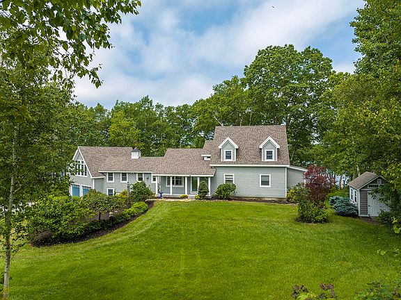 Stunning 3 bedroom, 3 bath Contemporary/shingle style home located on a cul-de-sac, with over 200 feet of water frontage and granite steps down to the St. George River. This home has views of Camden Hills and Thomaston and water views from almost every room in the house to enjoy the beautiful sunsets each night. First floor features an open living space great for entertaining, spacious kitchen with island, granite counters, Wolf cooktop & oven and a pantry. Dining area and living room with vaulted ceilings and stone fireplace, 1st floor primary bedroom suite with walk-in closet, guest bedroom suite, and a laundry room. Second floor features: a guest bedroom and an office with private balconies and a full bath. Some of the other highlights that this home offers are: a beautiful bright sunroom, wine cellar, decks/balconies off of every room on the waterside of the property, 2 car attached garage, a separate 1 car detached garage, and garden shed. This property is just 10 minutes to Main Street in Thomaston, 15 minutes to Main Street in Rockland, and 25 minutes to Camden.