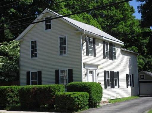 Antique colonial with a good balance of the older charm and todays amenities. Fully applianced kitchen with new granite counters and large eating area. Kitchen features counter stove, wall oven, CT backsplash, tin ceilings and a skylight. French doors from Kitchen lead to Sunken family room with 2 walls of windows. Living room has beautiful original fireplace with bee hive oven and built in cabinets/shelves. 1st floor office with built in work area could be an additional Bedroom. 1st floor laundry room has plumbing for half bath. Master bedroom has original fireplace, 2 closets and a master bath. Bedroom # 2 has an 8x8 jog for possible sitting area. BR # 3 no closet. Brand new carpet in FR & BR #2. 2 staircases. 3 zone heat. New rear roof. Updated windows. Extra storage area in garage. Large level fenced in yard with brick patio. This is a great home. Call Listing office to show.