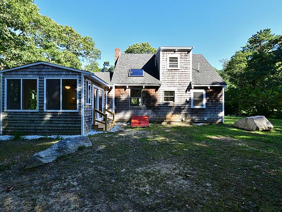 Set down a winding tree line road, this home offers peace & quiet, while it's just minutes away from all that the Cape has to offer. With 3-4 bedrooms, gorgeous hardwood floors that were just refinished, soaring tongue & groove ceilings plus skylights. Several updates including lots of brand new Pella windows, 2 new brand new sliders off the now 4 season sunroom, new stairs off the sunroom & so much more. Energy efficient natural gas heating, plus a wood burning fireplace. There is laundry set up on the first floor for a stackable & a second hook up in the basement, you can decide which works best for you. 3 bedrooms on the 1st floor with a master bedroom suite on the 2nd. A cute front porch greets you with a bench to sit on & enjoy the yard. Surrounded on 3 sides by mature trees, this home really does give you a nice sense of privacy. If you're looking for a weekend escape or a place to call home for good, this might just be the property you've been waiting for.