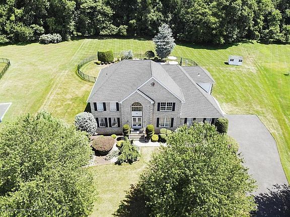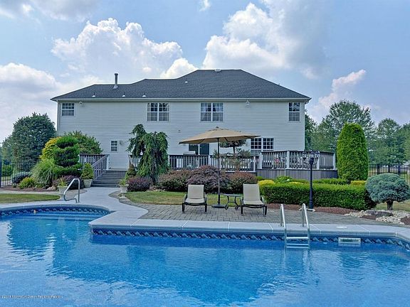 Sought after Marlboro Manse. This 5 bedroom 3 full and 2 half bath colonial features grand two story entry. Formal living room and dining room with custom molding and gleaming hardwood flooring. Family room open to Gourmet center island kitchen with granite counters,custom 42'' cabinetry and stainless appliances. Butlers Pantry. 9ft ceiling on 1st level. Bedroom/office on 1st level adjacent to bathroom. A true master bedroom suite with sitting room, two walk in closets, full bath with double sink vanity with granite counters. Spacious bedrooms with plenty of closet space. Full finished basement with full bath. Multi level Trex composite deck, L shaped inground pool, underground sprinklers, newer roof. Must see to appreciate! Great location for commuting!
