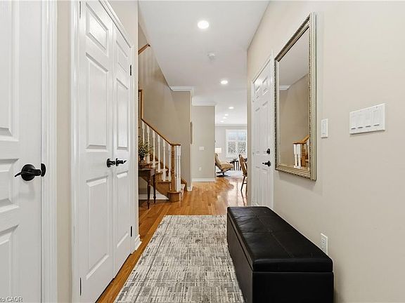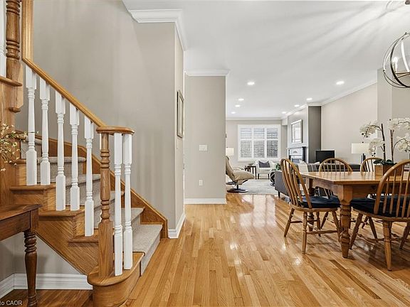 Welcome to 17-71 Sulphur Springs Road, located in Towne Manors in the heart of Ancaster’s highly sought after core. Just steps to local shops, restaurants, and everyday amenities, and moments from scenic conservation areas and walking trails, this beautifully updated home offers the perfect blend of lifestyle and convenience. Featuring over 2500 square feet of living space, 2 bedrooms, 2.5 bathrooms and a fully finished walk out basement. The main level features hardwood flooring, pot lights, California shutters and a warm, inviting living room with gas fireplace. The renovated eat-in kitchen is finished with stainless steel appliances and granite countertops offering plenty of space for casual dining. Access to a private back deck off the kitchen, ideal for morning coffee or entertaining. Separate dining room, 2 piece bathroom and inside entry to garage. The upper level is enhanced with hardwood flooring and new bedroom carpeting. An expansive primary bedroom features two walk in closets, a spa-like 5 piece bathroom ensuite and beautiful views. The second bedroom offers ensuite privilege, making it ideal for guests or family. A fully finished basement provides excellent additional living space, including a rec room with walk out to the private backyard, basement bedroom, convenient 2 piece bathroom, and separate storage room. This is a rare opportunity to enjoy carefree living right in the centre of Ancaster.