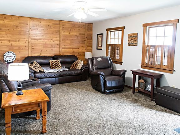 Situated on a large corner lot, this home is packed with updates and move in ready! Cozy living room with wooden wall accent, freshly painted walls and a spacious eat in kitchen. Three bedrooms and a full bath on the first level along with a half bath for guests. Downstairs in the partially finished basement, a potential 4th bedroom with a stunning brick fireplace. Lower level recreation space, lots of storage and laundry room can be located through the large 2 car attached garage with room for workbenches and toys. Outside you'll find a fenced in dog area, outdoor shed for yard supplies and a well is located on the property for the gardening enthusiast. Enjoy quiet evenings on the front sitting porch or inside the screened in sun porch located at the rear with a surrounding wooden deck patio. Updates include: Roof (2023), furnace (2020), AC unit (2020), hot water tank (2020), sump pump (2021) and dishwasher (2021).