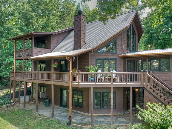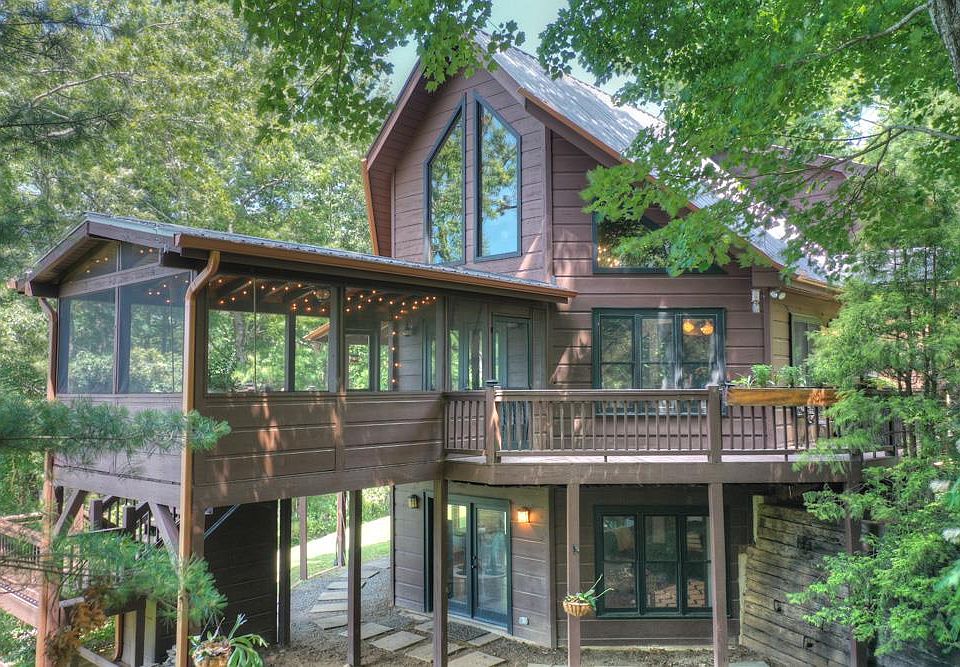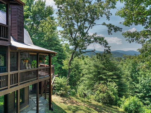 Welcome to your mountain retreat in Blue Ridge! This stunning 3-bedroom, 3-bathroom cabin nestled on 3.63 acres offers year-round long-range mountain views and a convenient location just a short drive from downtown Blue Ridge. The house is adorned with upgrades throughout, including granite countertops, custom wood working and cabinetry, stonework, and custom light fixtures. Outside, the beautifully maintained grounds feature mature landscaping, creating a serene and picturesque setting. As you step inside, the large fixed glass windows invite natural light to fill the space, creating a warm and inviting atmosphere. Each level of the cabin boasts a bedroom and bathroom, with the terrace level featuring a game room and second living area, perfect for entertaining friends and family. The primary bedroom is a true oasis, complete with a stone shower and a private balcony, providing the perfect spot to unwind and enjoy the breathtaking surroundings. Step outside to ample deck space, ideal for entertaining, and a large porch with a porch swing bed offering sunset views. This private setting offers easy access to restaurants, shopping, and a variety of outdoor adventures, making it the perfect combination of tranquility and convenience. Don't miss the opportunity to make this mountain paradise your own!