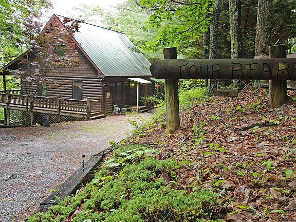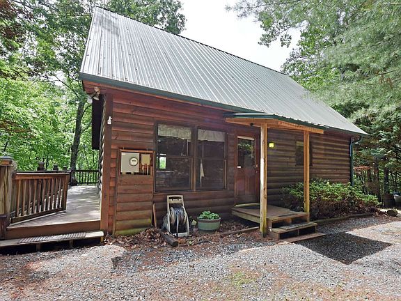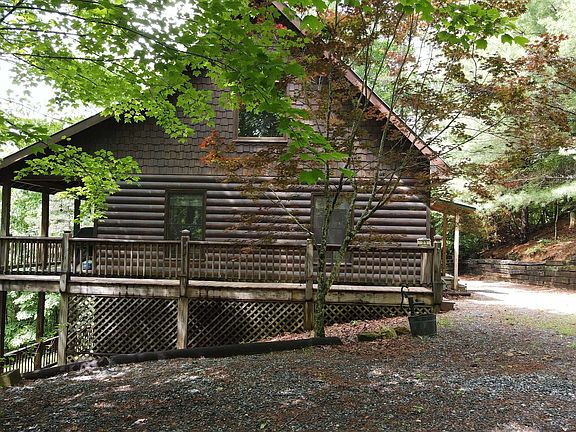 Stunning cabin perched in the sought after Cashes Valley! This home features inviting great room with an abundance of windows to take in the views & a stone fireplace. The kitchen offers solid wood cabinets, granite countertops & dining area. Bedroom and full bathroom round out the main level. 2nd level features a private covered porch, the perfect spot to enjoy your morning coffee, bedroom & full bathroom. The terrace level is partially finished with a full bathroom. Just add a ceiling and the flooring of your choice. The laundry is in the basement. There is an outbuilding for additional storage or a workshop. The home is offered fully furnished.