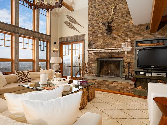 Showings begin Monday, February 26th.  Indulge in breathtaking vistas of Stratton and Bromley Mountain from this expansive Adirondack-style residence. Designed for hosting and entertaining, this home boasts five en suite bedrooms and 5500 sq. ft. of open living space. A cathedral living room with a floor-to-ceiling stone fireplace sets the stage, while the chef's kitchen features marble countertops and high-end appliances. Enjoy the opulence of a custom home theater and a spacious rec room with another fireplace. With an attached two-car garage and a sizable mudroom entryway, convenience meets luxury. Unwind in the hot tub or on the stone patio, soaking in some of the finest views offered by this Stratton Mountain property.