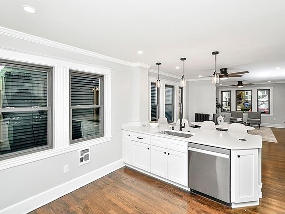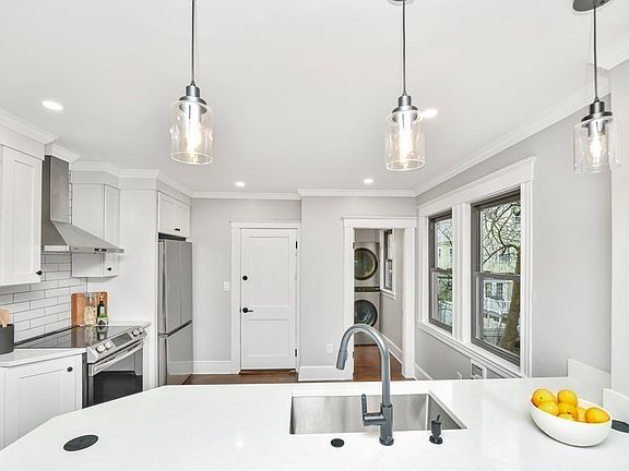 This newly renovated 2 Bedroom, 1.5 Bathroom Jamaica Plain condo is priced to sell, with easy access to the Forest Hills MBTA station and all that Boston has to offer. Enjoy hardwood floors and an open floor plan, flowing from the living and dining room into a beautiful kitchen with shaker cabinetry, quartz countertops, electric range, and island. In unit washer/dryer located off the kitchen. A manicured basement level provides storage, common bath, and unique doggy spa for the universal canine lover. Private front and rear decks are spacious and newly redone. This efficient renovation checks all of the boxes. Great value for investors and homeowners alike!