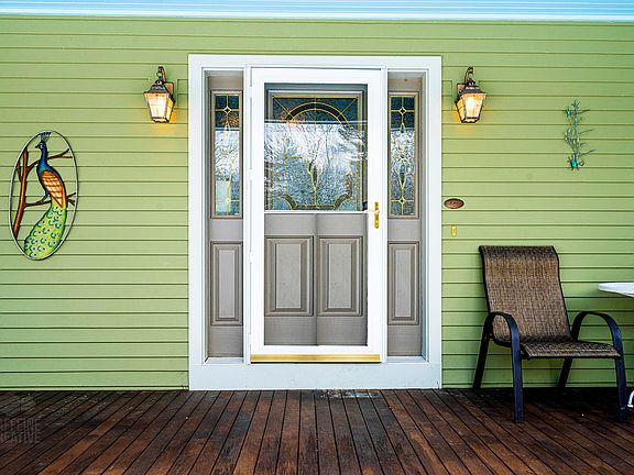 bathroom. The flex space just off the kitchen offers an additional sitting area or in home office space, leading out to the home's expansive composite deck. The finished basement makes an excellent billiards room or home gym. Peek behind the bookcase to find a 'secret room.' Enjoy those relaxing moments and the songs of the loons on the farmers porch or retreat to the back deck overlooking the open yard and fenced in in-ground pool. A 28 x 28 foundation has been