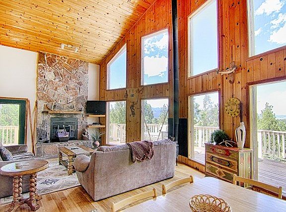 Fantastic location just 3 blocks from ski area/restaurants/shops with the "million dollar view" of Wheeler Peak and Moreno Valley. Recently remodeled with new carpet and bamboo floors, and updated bathroom finishes, new kitchen appliances, forced air gas furnace purchased in 2012. Two bedrooms and one bathroom on the main floor, master suite and loft on the top level, one bedroom and bath plus 2nd living area on the lower level. Open concept great-room with vaulted ceilings and a large window wall framing the view.