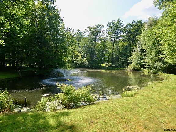 Custom built home nestled on almost 1 1/2 acres of privacy. Fully finished basement with additional kitchen. This home has gleaming hardwood floors, a walkout basement that's perfect for the in-law or older child . The interior is beautifully appointed with all top grade materials. The kitchen looks like it stepped out of the pages of architectural digest! Quartz counters installed in 2017, driveway 2015, AC condenser 2015, Whole house generator, gas f/place, huge deck that overlooks a beautiful pond with a waterfall in it, this is a Patanian built home. Also included is a satellite dish and skylight. Public sewer, walk in closet, central air, eat in kitchen and formal dining room add even more to the fabulous amenities. 20 mins. to Albany airport and train station.