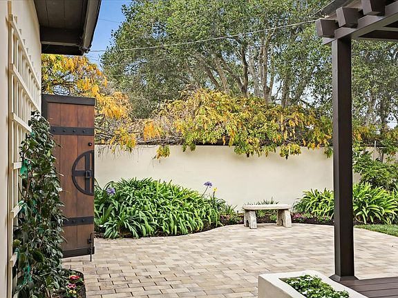 This extraordinary home is unassuming and encapsulated from the street of this premier Monterey neighborhood but step through the gates and be transported to your own private sanctuary right here in the heart of town. Paver pathways lead the way while the sound of waterfalls emanates a welcoming atmosphere. Mature foliage and towering trees encircle the perimeter providing paramount privacy. Garden sitting areas, covered decks, patios and an Italian marble built in fire pit cater to entertainment as well as relaxation.The L shaped design of the home while functional and appealing also serve to bring the outdoors in, offering access to the exterior from almost every room of the house including both the primary and guest bedrooms that each have french doors opening to a covered deck sitting area. Gorgeous plank ceilings, sturdy beams and original hardwood floors reflect the craftsmanship, brawn and beauty of its time.This is a truly special home and an amazing opportunity.