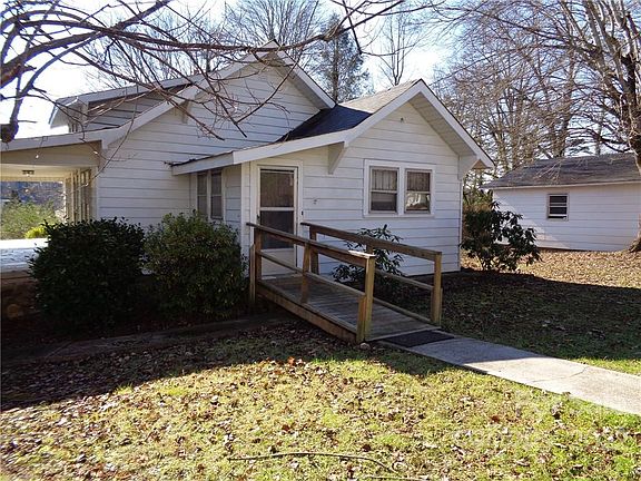 Nice older home located in beautiful Pleasant Gardens area on a corner lot. Home has a good wooden ramp for access into the kitchen area. Dining room has hardwood floors, freshly painted paneled walls and ceiling and has small overhead chandelier. There is a living room with beautiful hardwood flooring and den with a propane gas FP that has never been used. The den could possibly serve as a 3rd bedroom along with 2 other bedrooms and a hall bath with a good vinyl shower. The washer and dryer are currently located in the kitchen. The home has a wonderful covered front porch w/attractive stone floors and rock steps. There is a partial cellar/basement w/exterior entry. Home has a large mostly level yard that includes an outdoor storage building and a 2 car detached garage that does not have doors. Home being sold in "as is" condition.