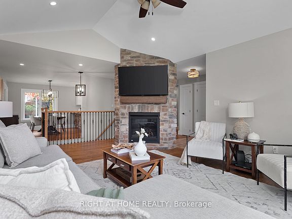 Welcome to this beautifully designed 3 + 1 bedroom, 3 bath home, where modern comfort meets timeless style - thoughtfully upgraded over the past several years. Between 2021 & 2022, the home saw significant updates, including new appliances (excluding the fridge), garage door openers, front landscaping, and enhanced energy efficiency with attic insulation added to the garage and topped up throughout the main house. The open-concept main floor is ideal for entertaining, featuring a bright, modern kitchen that flows seamlessly into the dining and living areas. Enjoy abundant natural light, and a welcoming stone fireplace that anchors the space beautifully. In 2023, the lower level was professionally finished, offering impressive 9-foot ceilings and a versatile recreational space complete with gym and games areas - perfect for relaxation and entertaining. That same year, the main floor received a fresh, modern paint update, and a UV water filtration system was installed to enhance water quality. The main bathroom was completely refinished in 2024, showcasing custom cabinetry, heated floors and timeless design. Most recently, in 2025, a new septic bed and tank filter were installed, providing peace of mind for years to come. Custom cabinetry extends throughout the home, including both the main and lower-level bathrooms and the spacious laundry room. Car enthusiasts and hobbyists will appreciate the oversized heated and insulated garage, featuring two 10-foot-wide doors, big windows and a tall ceiling, offering plenty of room for vehicles, storage, or workspace. Move-in ready and exceptionally maintained, this home combines thoughtful updates, elegant finishes, and modern convenience - the perfect place to create lasting memories.