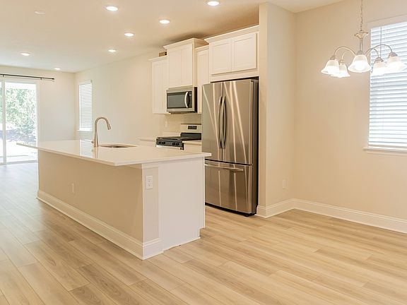 Welcome to this stunning three-bedroom, two-bath home located in the desirable Rivertown community in St. Johns County! This home features an open floor plan that seamlessly connects the dining area and living room, creating a spacious and inviting atmosphere. Durable wood-like flooring in the living area and kitchen, complemented by upgraded cabinets, counters, and a modern sink island. The kitchen is equipped with stainless steel appliances, making meal preparation a breeze. The bedrooms are carpeted for comfort, and the bathrooms are beautifully tiled. Windows throughout the home allow natural light brighten every room. The large covered back patio overlooks a serene open field. An attached garage offers convenience and extra storage. Washer/Dryer included. Located in one of the most desirable communities which provides access to a wealth of amenities, including biking trails, nature preserves, sports courts, a fitness center, riverfront hiking, a play park, and resort-style pools.