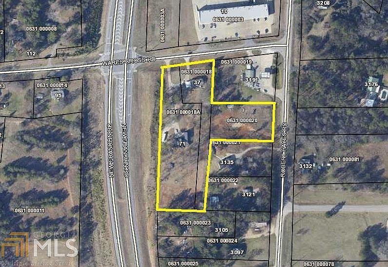Property consists of 4.08 acres. Partially zoned residential and partially zoned commercial- property fronts on three roads- 630 ft on U.S. 27 North, 211 ft. on Wares Cross Rd., and 160 ft. on Robert Hayes Rd Property contains two houses, one brick 3 bedroom, 3 baths home containing approximately 1809 sq. ft according to the Troup County tax records plus 1,700 sq ft unfinished basement. Also includes a 1,350+/- sq ft. frame tenant dwelling
