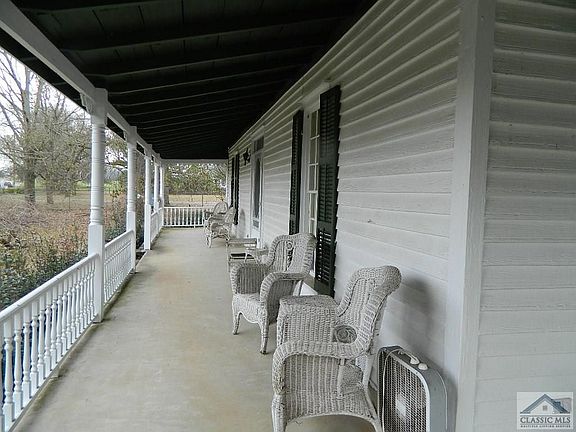 Beautiful historic 4 bedroom 3.5 bath home on 9 acres. Beautiful wrap-a-round porch and nice screened back porch that leads to the two car garage. Home is over 100 years old and has only had two owners. Pine floors through out the home. Two bedrooms and 2.5 baths on the main floor. Big eat in kitchen and large living room. Sun porch off of one bedroom and closed-in porch off the laundry room. Enter the home from the front door to the wide hall which has stairs to the 2nd floor Two large bedrooms on the second floor and one bathroom. Enjoy entertaining on the wide wrap-a round-porch. This home is so charming and full of history. If you are in need of a workshop, this property has two large workshops with concrete flooring. The front workshop is 83 X 49.5 and has four separate rooms and four roll doors. The workshop to the side has two rooms measures 77.5 x 40 and has three rolled doors and concrete loading dock. Shops have electricity, water, window air units and bathrooms. This beautiful property is located 2.7 mile from Watson Mill State park and 17.5 miles from the University of Georgia and down town Athens. Don't miss out on owning this special property.