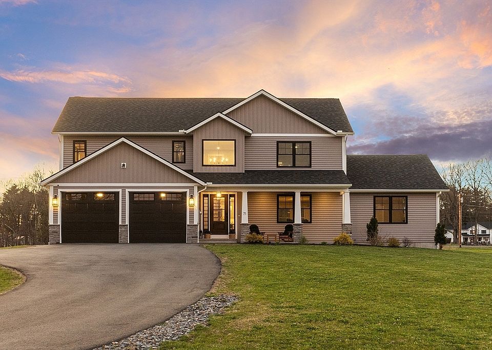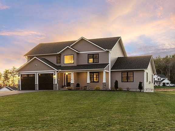 Buyer lost financing back on market. Step into luxury with this beautifully designed home. A grand open foyer welcomes you into an expansive open-concept first floor, featuring engineered hardwood floors throughout. The upgraded kitchen is a chef’s dream, boasting quartz countertops, a gas range, a white porcelain farmhouse sink, and a spacious walk-in pantry. The impressive 16x24 family room is the heart of the home, complete with a soaring cathedral ceiling and a fireplace adorned with a custom mantle. A thoughtfully designed mudroom off the garage offers custom built-ins, a half bath, and a convenient laundry area. Up the hardwood staircase, you’ll find three generous bedrooms and a stylish common bath with a deep tub and tiled surround. The primary suite is a true retreat, featuring a dramatic cathedral ceiling and a spa-like en-suite with a luxurious tiled shower, a glass door, a Vigo 4-jet shower panel, & a freestanding soaking tub. Custom shutters thru out 1st floor.