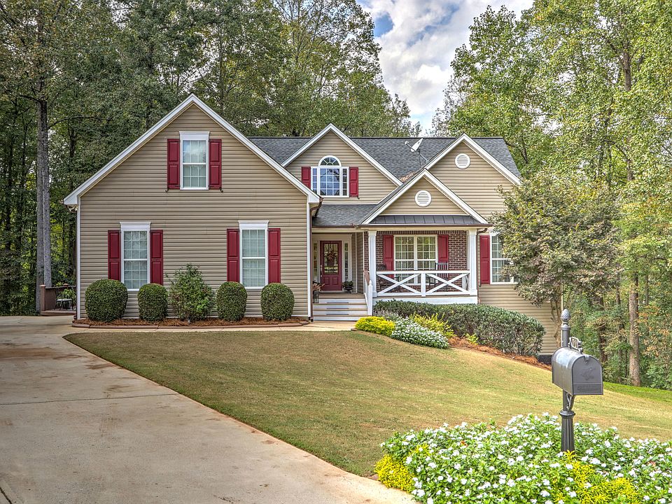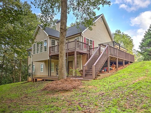 Welcome home to your slice of heaven! This hard to find ranch on a full finished basement offers you 8+ tranquil private wooded acres. The large wrap around deck is perfect for your morning coffee & grilling dinner in the evening. Unwind in the sunroom w/double sided fireplace to read your favorite book. Host large gatherings in the family room on the other side of the fireplace. Retreat to your extra large master bedroom w/en-suite bath. Hardwoods throughout the main except for 2 secondary bedrooms. Unbelievable finished basement w/one-of-a-kind man cave w/custom bar-perfect for watching the big game and hosting huge parties! The unfinished bonus room awaits your special finishing touches! Great location-close to I-85, restaurants, shops, & NEGA Hospital!