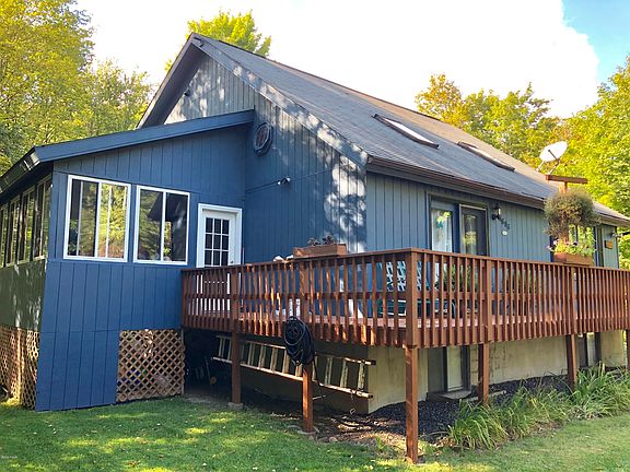 Well maintained contemporary home on close to a half acre of beautifully landscaped property located in one of NEPA's premier four season communities. This 1986 sq ft. 4 bed 3 bath home is roomy and inviting with a kitchen/dining room/living room-combo open floor plan spacious enough to accommodate a small gathering or an entire family function. Newly remodeled lower level includes private living area, full bathroom, entertainment room and large bedroom. With a bright sun room, backyard shed and paved driveway, this is the perfect single family home to enjoy the Poconos in year round.