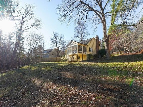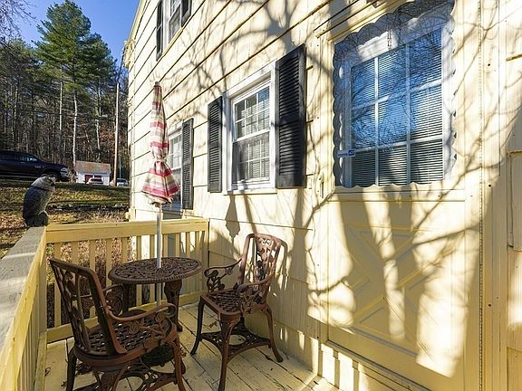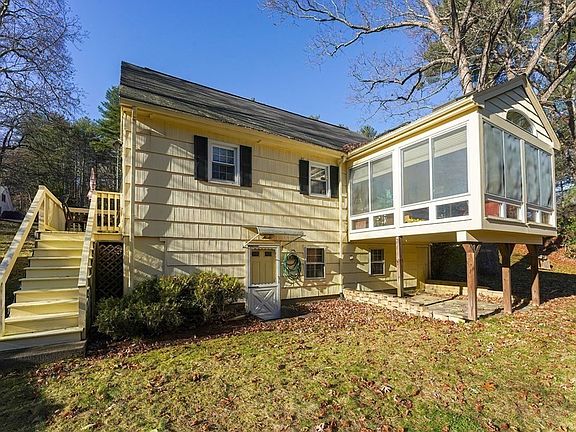 This spacious Colonial home is nestled from the street with a wooded backyard. Features a brand new (Jan 2024) septic system just installed for a three bedroom home. New outdoor stairway leading to front door from driveway. Hardwood floors throughout home. Working wood fireplace in spacious livingroom. One and a half bathrooms. Eat-in kitchen with access to backyard through deck. Enjoy seeing the deer from the four season sunroom porch overlooking beautiful backyard which is close to one acre. . Formal dining room with built-in china cabinet. Master bedroom boasts two closets with built-in mirrored area. Full walkout basement with wash/dryer hookups, soap stone sink and wood stove fireplace. Study attaches to sliding doors of sunroom that can easily be used as a third bedroom. Interior of home freshly painted in December 2023. Furnace is approximately four years old. Dishwasher approximately 5 years old. Spacious shed in backyard for all your outdoor equipment