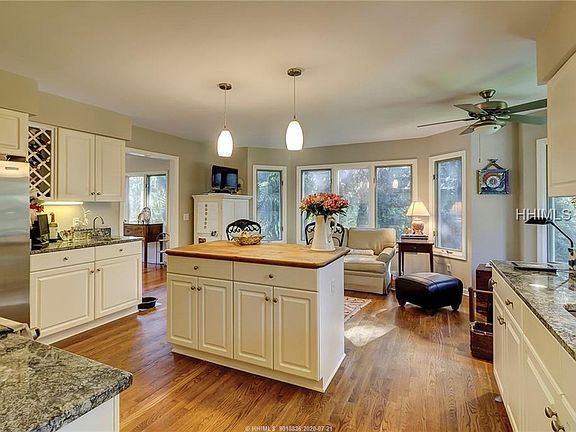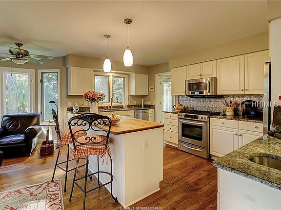 Great Views of 14th Fairway of the Sea Pines Country Club course. Newer style 3 bedroom, 2 1/2 bath home located at the end of a cul-de-sac. Master on 1st Floor & 2 bedrooms upstairs. Living Room has a cathedral ceiling, fireplace flanked by built-in's and lots of windows. Separate dining room. Nice master bath with tiled walk-in shower, stand along modern tub, double vanity and his & her walk-in closets. Kitchen has granite counter tops & stainless steel appliances & opens to a sitting area. Spacious bedrooms. Some features include: smooth painted ceilings, hardwood floors, spray foam insulation & wide rear deck. In an excellent location.
