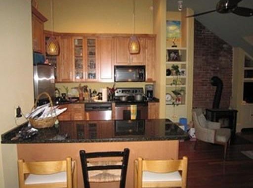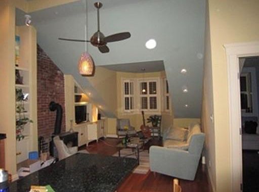 :: AVAILABLE JULY 1ST :: Beautifully renovated South End two bedroom penthouse with fabulous private roof deck and stunning city views. Features include a large open living and kitchen with enormous high ceilings, hardwood floors, recessed lighting and custom built in shelving. The contemporary kitchen has granite counter tops, stainless steel appliances and a breakfast counter. The larger of the two bedrooms has a large walk in closet and direct access to the outdoor space and the staircase to the private roof deck. The smaller bedroom will fit a queen sized bed and has a good sized closet and west facing window with plantation shutters. Additional features include a modern bathroom, wood burning stove, ample storage and free common laundry in the building. Sorry, no pets or smokers.