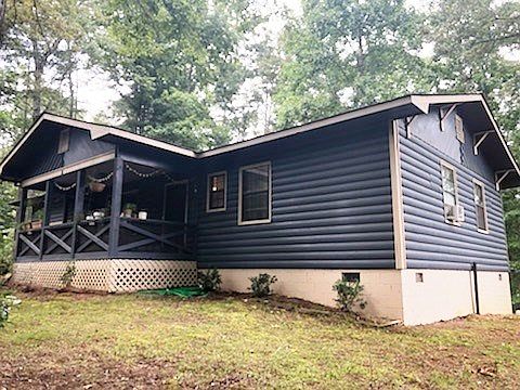 D LOG cabin , Ranch Style home. Not only does this home boast one level living, it has two screened porches to enjoy all the seasons the mountains. Open floor plan and vaulted ceilings greet you as soon as you step in the front door. Large stone gas log fireplace centers the living room. Skylight in the kitchen brings the beautiful outside in! Laundry room, closets, and plenty of storage! Second bedroom has a bonus room off of it that would make a great office area. Leads to second screened in porch. Single Car GARAGE with WORKSHOP attached. All of this, very close to town, and at a great price!