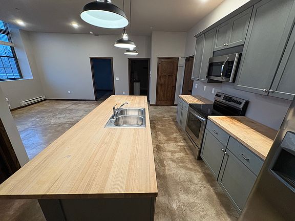 Available November 21st! This PET FRIENDLY, beautiful apartment is a one of a kind! Recently remodeled with finished concrete floors, new cabinetry, appliances, bathroom, and fixtures! This unit features tall, attractive ceilings and an inviting living room, kitchen area that is great for hosting. This apartment complex features a nice parking lot, a common area with an outdoor grill and firepit, and coin laundry for your convenience. Enjoy air conditioning and a dishwasher to make a life more comfortable! Located near downtown Menomonie, the Farmers Market, and the Menomonie Co-op, this location is stellar! Call today to see this unique, one of a kind apartment!