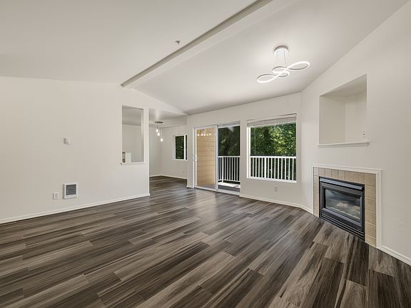 Discover this unique top-floor unit in the luxurious Bordeau Condominiums of Sammamish. This 2-bed, 2-bath home offers 981 sq ft of open living space. This bright and airy home boasts vaulted ceilings and abundant natural light from its plentiful windows. Enjoy a cozy living area with a gas fireplace, a quaint kitchen, and an exceptional primary suite with an en-suite bath and walk-in closet. Interior recently painted. Tankless water heater for endless hot water. The unit comes with a private garage right at your doorstep. In-unit laundry adds convenience. Community perks include two pools, a hot tub, gym, clubhouse, and open space. Close to trails, shopping, dining, SR-520, Costco HQ, MSFT and top schools. No rental cap. Welcome home!