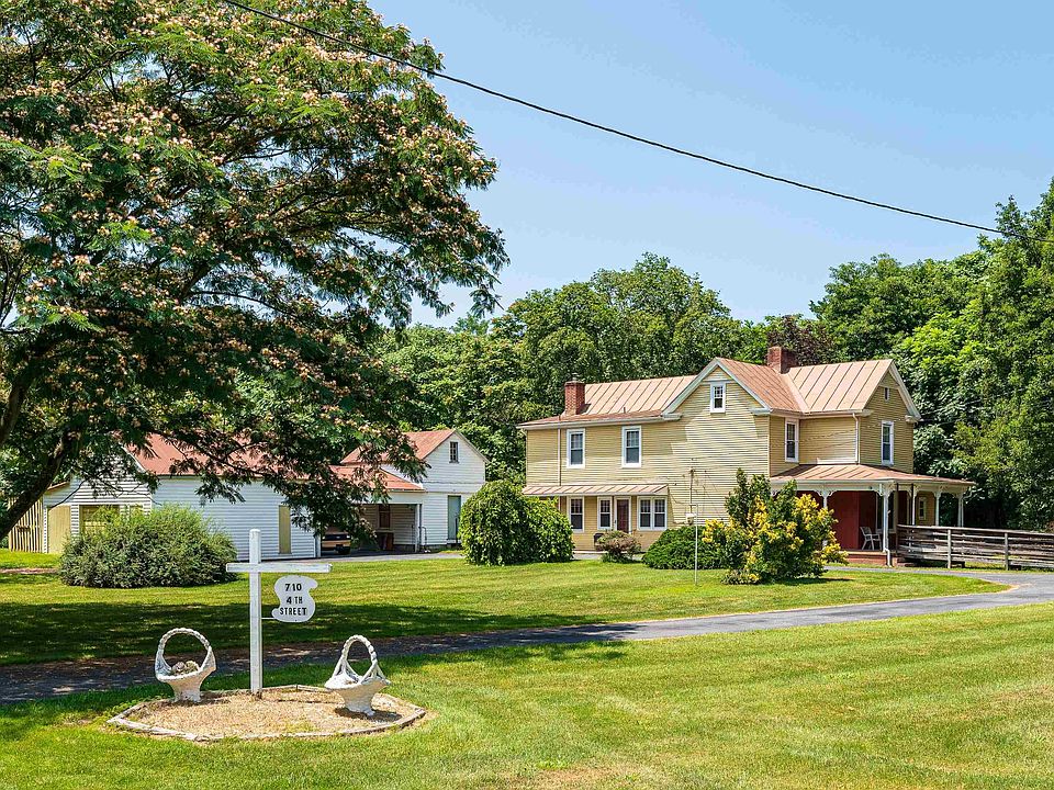 Priced under certified appraisal, spacious older style 4 bedroom home with updated features. Two paved driveways, concrete front porch, on 7 town lots (approx. 1 acre), detached workshop, carport, garage, storage building. Option to purchase additional lot for $33,000. Total finished living area has 3,064 square footage. Primary bedroom with attached bath and walk-in closet on first floor. Sun room off large eat-in kitchen, laundry room with half bath also on first floor. Large hall on first and second floor offer space for home office. Second floor has 3 bedrooms, large bath with additional steam shower room. Division rights with town approval. Less than 3 minutes from Riverside Park!