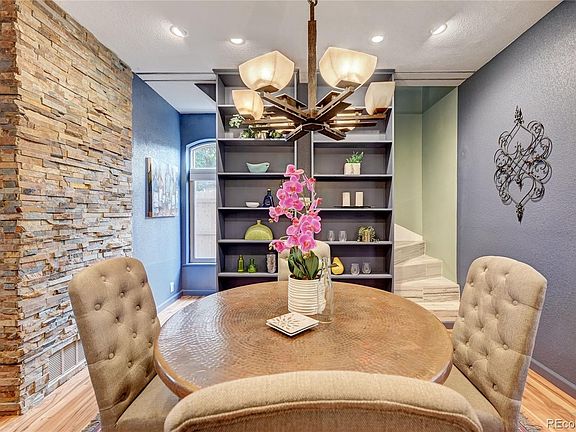 - Description: Conveniently Located Dining Space With Sliding Built-Ins And Chandelier