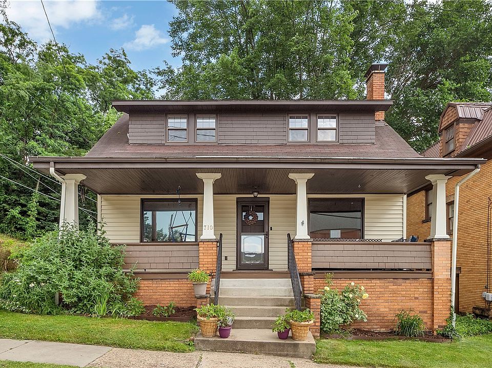 The covered full front porch welcomes you home to this lovingly updated and maintained home. Step through the front door onto hardwood flooring that flows throughout the main floor. A large picture window brings natural light into the living room where you will find a decorative fireplace flanked with bookshelves. Pass through the original pocket doors to enjoy meals around the table in the formal dining room where you will find a built-in cabinet & front and side facing picture windows. The chef in the family is going to love the new kitchen with the custom cabinets and stainless appliances. The first floor primary bedroom faces the backyard and features a ceiling fan and half bath. Head upstairs to find 3 additional bedrooms and a full bath with a tile tub surround. Lower level houses a gameroom, bathroom & laundry. Step out the kitchen door to enjoy the deck in the private backyard. Don't miss the 2 car detached garage and additional storage shed.