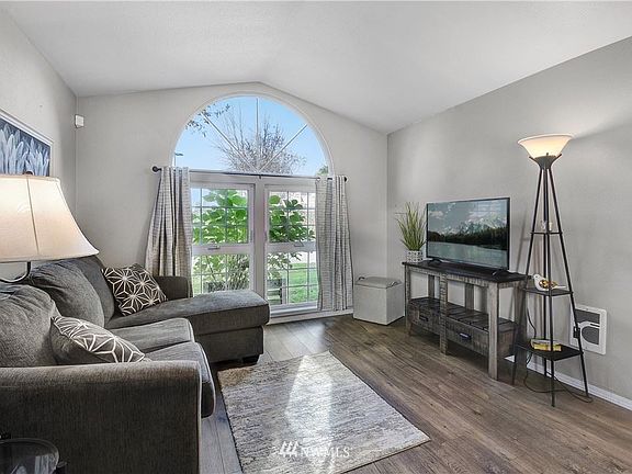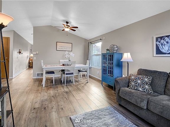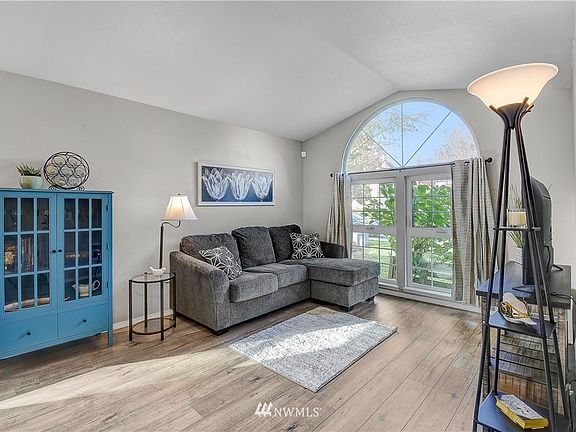 This thoughtfully updated, north-facing rambler sits on a secluded dead-end street and enjoys lots of natural light. Modern colors, vaulted ceilings and an attractive floorplan make this home feel spacious and bright! You'll love all of the energy upgrades including 2 heat pump / ac units, tankless water heater and the cozy new pellet stove in the family room. All new interior paint, flooring, fixtures, kitchen appliances, outlets, bathroom fixtures, vanities and lighting throughout! The level, fully fenced lot features lots of excellent garden space, raised beds, an oversized patio, firepit and garden shed with possible RV parking. Don't miss the beautiful palm trees in front yard! Great location near shopping & Boeing.