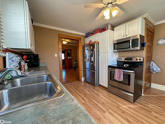 Cozy move-in-ready home in Albia, Iowa nestled on the edge of town offering quiet living with city conveniences. This property offers a well-cared for home, a great yard, and a 24’x40’ detached garage/shop. The home’s functional layout offers 1,200 finished square feet with an efficient kitchen, formal dining room with beautiful woodwork, living room, bedroom, full bathroom, and bonus room all on the main floor. On the upper level, you’ll find the second bedroom and tons of storage space. The basement houses the utilities and offers additional space for storage. The spacious lot showcases a quality 24’x40’ detached garage/shop with 2 overhead doors, a 200-amp electrical panel, heat, insulation, and full concrete floor, and don’t overlook the useful secondary detached garage offering tons of room for storage, lawncare items, or even a shelter for your pets. There’s nothing like it at this price so call soon to schedule your tour!