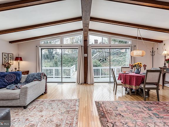 - Combination Dining/Living, Entry Level Bedroom, Exposed Beams, Dining Area, Open Floorplan, Cathedral Ceiling(s), Beamed Ceilings