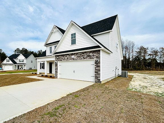 Welcome to Orchard Creek! From the front porch to the custom landscaping, you're bound to fall in love with the curb appeal that this home offers. Boasting 1886 heated square feet, The Cole W Bonus floorplan is one of Atlantic Construction's most desired floor plans. As you step into the foyer, you're greeted by the adjoining dining room. The Living room, centered by an electric fireplace and blanketed by natural sunlight, is open to the kitchen. Boasting a dishwasher, electric oven, built in microwave, and plenty of cabinet space the kitchen is perfect for entertaining. The Primary Bedroom trey ceilings and spa-like Primary Bathroom which includes a large soaking tub and double vanity. NOW is the time! Call YOUR AGENT for a personal tour of the homesite. TODAY!!!